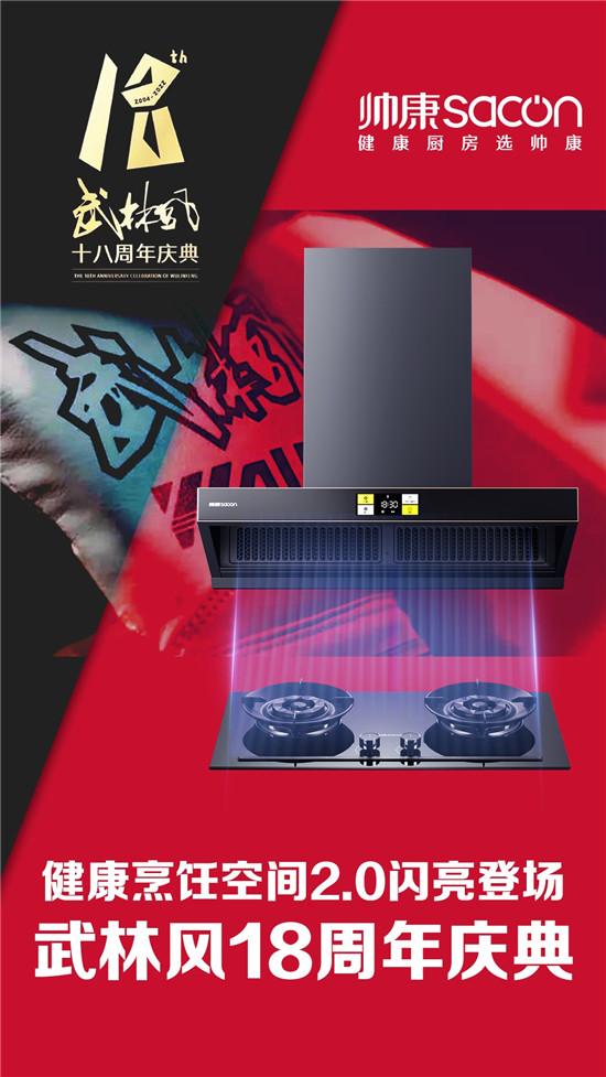 帥康健康烹飪空間2.0在現場將呈現給觀眾不一樣的視覺享受,讓博大精深的中華武術文明,與中式廚電所傳承并發展的尊榮高雅的中華飲食文明,打造出一個廚電行業的全新武林風!