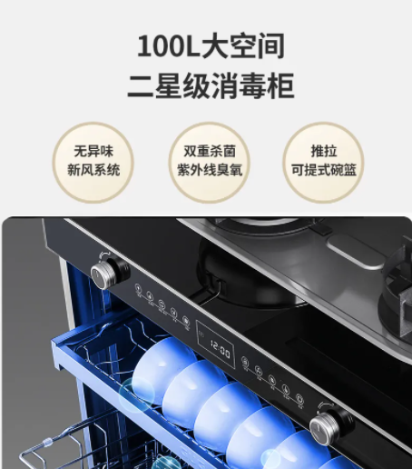 碗盤不應該在臺面堆成一摞,而應該有專門的收納保潔場所。佳歌消毒柜款集成灶就是好選擇。