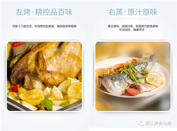 蒸、烤是我們在日常生活中使用最多的兩種烹飪方式,多種我們熟悉的年味兒都是使用這兩種烹飪方式制作而成,像年夜飯中常見的餃子(寓意招財進寶)、蒸魚(寓意年年有余)、烤雞(寓意大吉大利)等等。美多語音集成灶獨特的左烤右蒸方式,讓你體會食材最真實的味道!