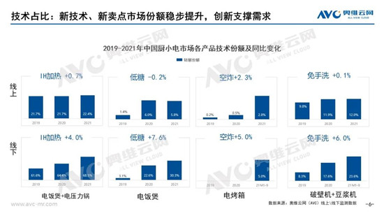 自2021年以來,小家電領(lǐng)域廚房烹飪小家電持續(xù)承壓,源自廚房小家電行業(yè)本身市場周期臨近成熟,加之2020年新冠疫情影響下,宅經(jīng)濟(jì)帶動的火爆銷售促使廚房小家電行業(yè)快速透支,2021年的負(fù)增長成為必然。但是,線下市場恢復(fù)情況過度不近人意,目前來看基本已無翻身之力,企業(yè)亟待探索線上線下融合的更優(yōu)道路。