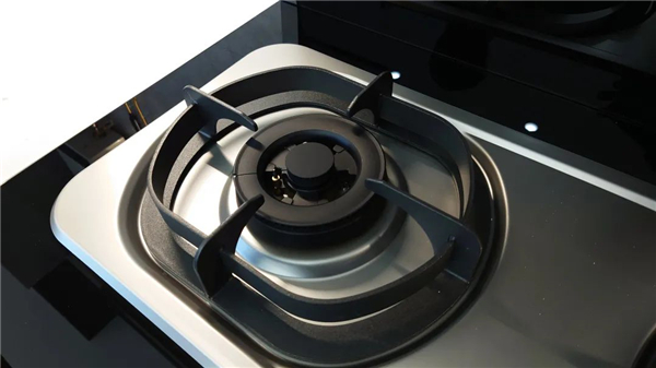 煙機模塊往下,便是下廚者最看重的燃氣灶,氣灶的左右爐頭被寬幅承液盤所包圍,煮東西不小心溢鍋也不用擔(dān)心灑到外面,承液盤的周圍還鋪設(shè)了一層高強度黑晶玻璃,光可映人。