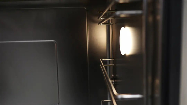 蒸烤箱的右側(cè)有一盞暖光小圓燈,蒸烤時可以借助燈光隨時觀察食物生熟狀態(tài),調(diào)整烹飪時間,增加烹飪成功率。