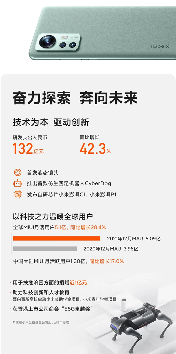 智能手機出貨量在全球62個市場排名前五,14個市場出貨量排名第一。全球MIUI月活用戶達5.1億,AIoT平臺連接設備數達4.34億臺。