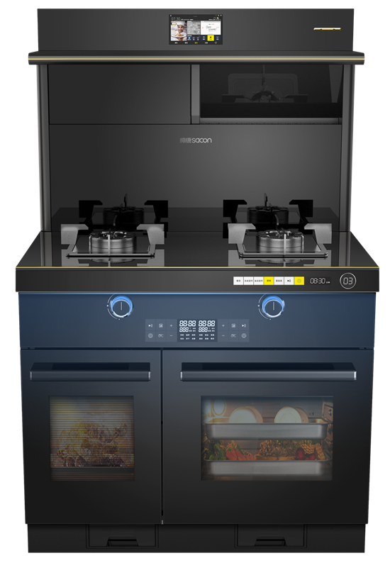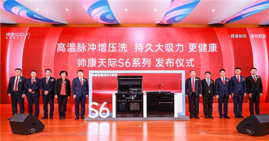 以帥康今年3月剛發布的全新一代自清洗集成灶S6系列為例,性能表現優秀。S6搭載了帥康原裝的高性能直流變頻電機,轉速高達2070r/min,智能巡航增壓,靜壓值高達900Pa,擁有21m3/min超大風量,真正實現油煙不上臉;灶具方面,匹配轂動力高效燃燒系統,擁有5.2KW猛火的同時還具有超1級能效,在家也能體驗大廚的烹飪快感。功能集成方面,S6采用獨立循環雙艙烹飪,蒸烤可以同步進行,實現二十分鐘一桌菜,年輕人聚會的最佳烹飪工具,蒸箱135℃透骨高溫蒸,能夠應對各種食材,烤箱原創健康空氣炸,實現低油低脂、美味加倍;更有12種烹飪模式,玩轉花樣美食。
