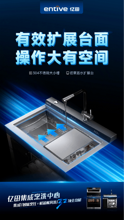 此外,“更懂中國(guó)廚房”的億田集成科技,還在充分滿足廚房功能需求的同時(shí),為每一位中國(guó)廚房用戶合理規(guī)劃廚房空間。億田集成水槽洗碗機(jī),內(nèi)置大容量雙層拉籃,超大內(nèi)存空間,最多可放置10套聚餐所需用具,為您省去一組碗柜的同時(shí),還能增余家庭儲(chǔ)藏空間。“1平米”的空間內(nèi),更顯極致自由。