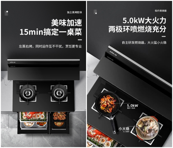 億田「集成烹洗中心」,在“一平方米”的空間之上,深度集成蒸烤獨(dú)立集成灶+集成水槽洗碗機(jī)多重功能于同一立場(chǎng),將原先脫離的烹飪+洗滌的場(chǎng)景合二為一。48L蒸箱+28L烤箱的雙腔內(nèi)膽模式,5.0KW超強(qiáng)火力,不僅解放出“煙機(jī)、灶具、蒸箱、烤箱、微波爐”等傳統(tǒng)灶具所需空間,更通過“蒸烤同步,美味加速”,有效縮短日常烹飪所需時(shí)間,最快15分鐘便能完成一桌菜,輕松應(yīng)對(duì)各種烹飪場(chǎng)合!