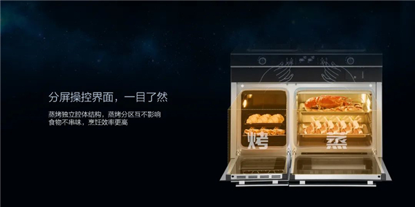 當(dāng)代消費(fèi)者飲食多元化,既想要健康的蒸,又垂涎風(fēng)味的烤。如若單獨(dú)購買蒸箱與烤箱,廚房空間雪上加霜;如若選擇蒸烤一體,蒸的同時不能烤,蒸烤排隊,耗時又易令菜冷掉。