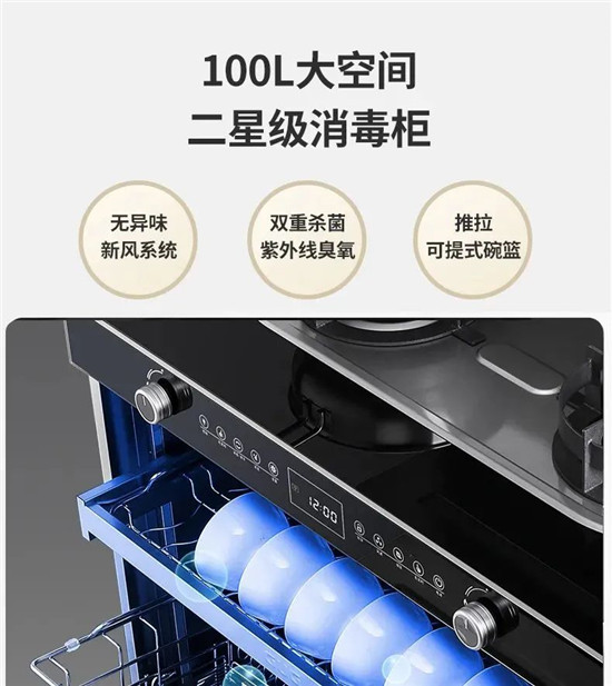 小戶(hù)型廚房最大的問(wèn)題還是在于空間的合理運(yùn)用上。佳歌一灶一槽,兩臺(tái)配齊廚電八件套,集成多種廚電減少空間占用。