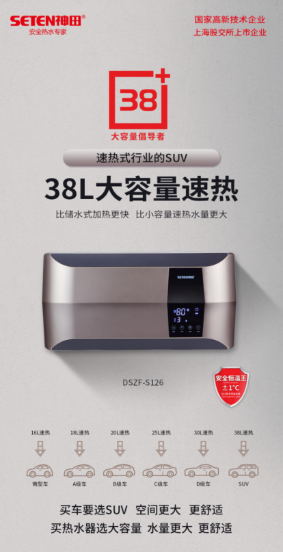 作為專業品牌,神田集團在2019年就否定了小容量速熱的開發方向,堅持開發大容量速熱產品的方向,經過三年的布局,大容量速熱因為水量充沛,性能穩定,現在成為了速熱產品的主流產品。