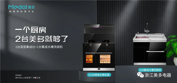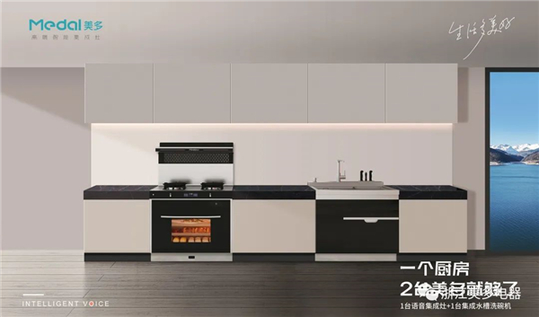 一臺美多語音蒸烤類的集成灶1臺=16臺,集合油煙機、燃氣灶、消毒柜、置物臺、蒸箱、烤箱、保溫箱、電飯煲、0.9米櫥柜、面包機、烘干機、發酵機、炸鍋、蒸蛋器、電燉鍋、電烤架,方寸間凝聚美食創想。一臺美多集成水槽洗碗機搭載洗滌、切配、洗碗、除菌、消毒、烘干,一機多用!兩者更好搭配櫥柜風格,更顯品位和優雅,集成廚電占地面積小,省下空間可隨心利用,吊柜還能增加儲物,非常實用。
