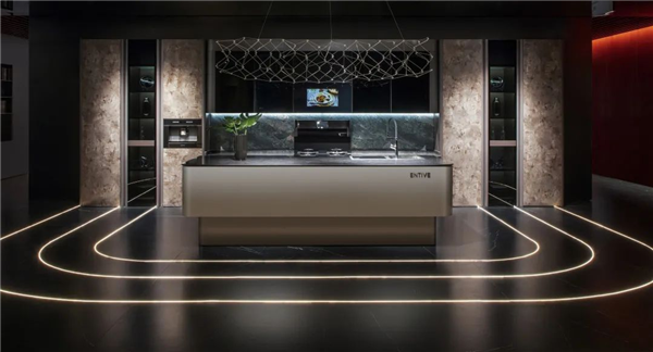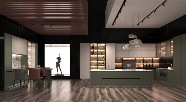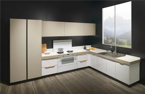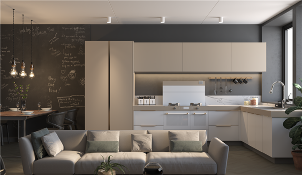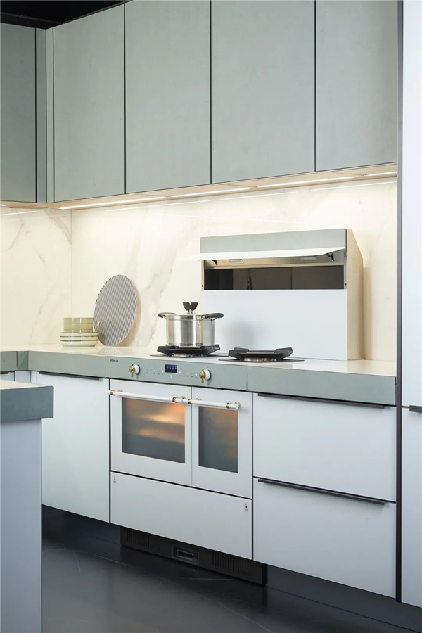 億田高端定制廚房以整體廚房視角切入,配備與廚柜風格相符的廚電,實現風格一體化定制,呈現和諧統一之美。