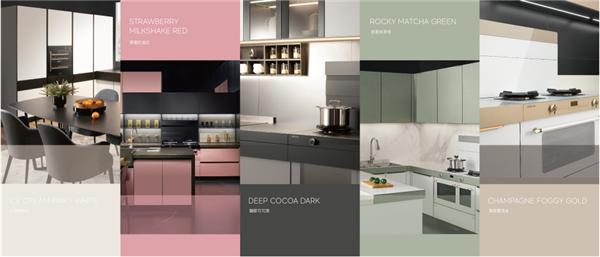 億田高端定制廚房聯合全球知名色彩開發機構,重磅推出5大特調色,提供豐富的定制色彩選擇,讓人眼前一亮。