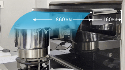 此外,9YC03蒸烤炸款集成灶超大尺寸置物架設計(寬860mm,深160mm)與灶臺形成了一個超大攏煙區,能夠快速鎖煙,大幅度降低了油煙向外逃逸的可能性。