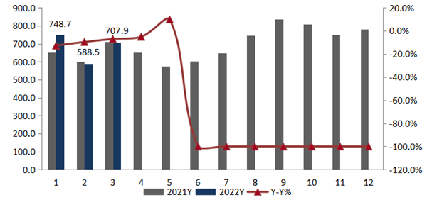 產業在線數據顯示:2022年3月彩電產量1011萬臺,同比下滑1.7%,銷量1000萬臺,同比下滑2.0%;其中出口708萬臺,內銷292萬臺,分別同比去年下滑0.4%、5.6%。綜合1-2月份來看,內銷出貨888萬臺,同比下滑6.9%;出口2030萬臺,同比增長3.5%。盡管面板價格下滑緩解了整機的成本壓力,但是終端依舊沒有顯示比較好的復蘇跡象,內銷市場自疫情后持續的下滑。出口市場在2021年整體量價雙增,但是在2022年之后,雖然出口量有微增,但是出口額下跌幅度較大。