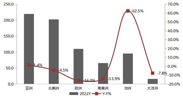 圖二:中國大陸液晶電視3月份出口細分區域概況(單位:萬臺)