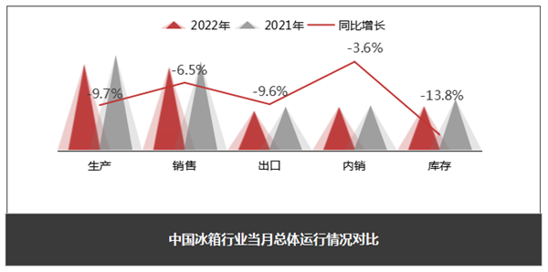 2021年一季度累計來看,冰箱行業生產量為1972.2萬臺,同比下降5.9%;銷售量為1990.5萬臺,同比下降4.6%,出口量為952.7萬臺,同比下降8.0%,內銷量為1037.8萬臺,同比下降1.3%。