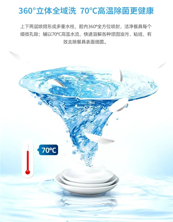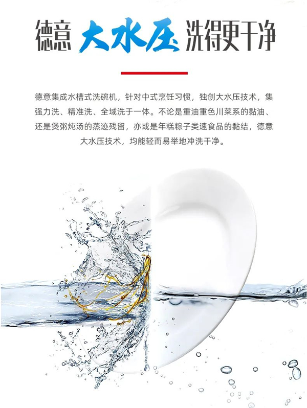 德意DC-90JX6集成水槽洗碗機,針對中式烹飪習慣,利用獨創的大水壓技術,有效增強沖刷水壓達29kPa,形成高壓噴淋,360°渦輪高壓沖洗,可以達到強力洗、精準洗、全域洗的效果。