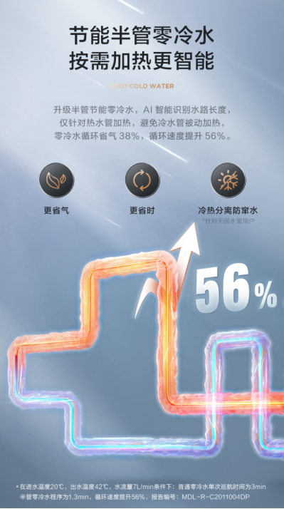 品質生活對熱水等待時間的挑剔不言而喻,想要暢快舒適的沐浴,零冷水是一個關鍵的因素。而目前市面上的多數傳統零冷水燃氣熱水器基本采用全管道加熱巡航,雖然實現了零冷水,但導致預熱時間長的問題。