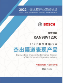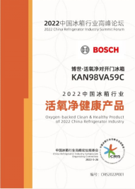 博西家電前瞻把握消費者對健康、抗菌家電產品的需求,以技術創新和產品研發助力行業迭代進步。得益于對市場趨勢和用戶需求的精準洞察,以及在保鮮、抗菌領域的出眾實力,博西家電旗下博世家電和西門子家電分別獲評“2022中國冰箱行業健康儲存高端引領品牌”及“2022中國冰箱行業保鮮杰出貢獻品牌”。在特殊時期,冰箱儲存量、儲存時長、保鮮能力是市場和消費者最亟待解決的痛點。博西家電能夠收獲儲存和保鮮的雙重認可,是對我們“以消費者為導向”而開展研發生產的極大肯定。產品方面,博世·活氧凈對開門冰箱KAN98VA59C摘得“2022中國冰箱行業活氧凈健康產品”,西門子智能eNose多門冰箱KF72FPA56C榮獲“2022中國冰箱行業智能保鮮先鋒產品”。