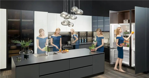冰箱內嵌,隱藏式設計,整體相融,視覺統一,又減少衛生死角,便于清潔。