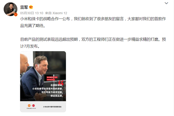 目前產品的測試表現遠遠超出預期,雙方的工程師們正在做進一步精益求精的打磨。預計7月發布。”
