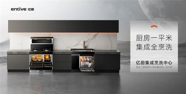 2022年,億田再次跳出廚電單品思維,從整體廚房場(chǎng)景的宏觀維度,推出“億田集成烹洗中心”,通過一臺(tái)蒸烤獨(dú)立集成灶+一臺(tái)集成水槽洗碗機(jī)的套系化組合,完成『智能烹飪+鮮蔬餐具洗』全功能覆蓋,從而打通“食材接入-烹飪產(chǎn)出-餐后凈洗”廚房全鏈路,將烹飪前、中、后段的諸多問題集中于一平米解決。