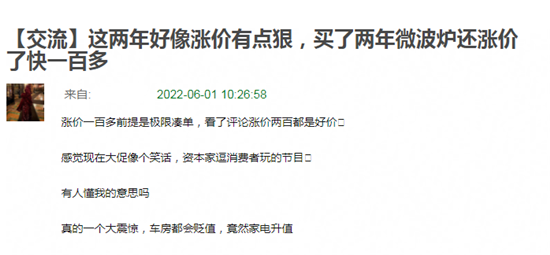 有豆瓣網友表示:自己買了兩年的微波爐,同樣是在618購入,同型號商品在此次的預售中還漲價了快100元。而在這個樓中,遇到相同情況的品類還有空調、洗衣機等等多個種類的大家電。