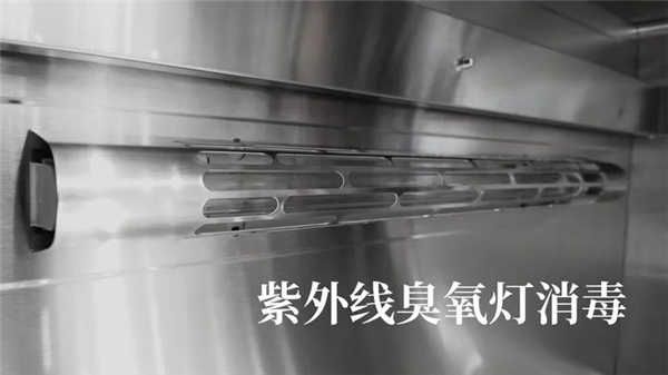 紫外線是佳歌A5其中一種消毒方式,超長的紫外線燈鑲嵌在背板上,底部還搭載了熱管進行加熱烘干,配合新風排氣系統,消毒完成后無需擔心異味殘留。