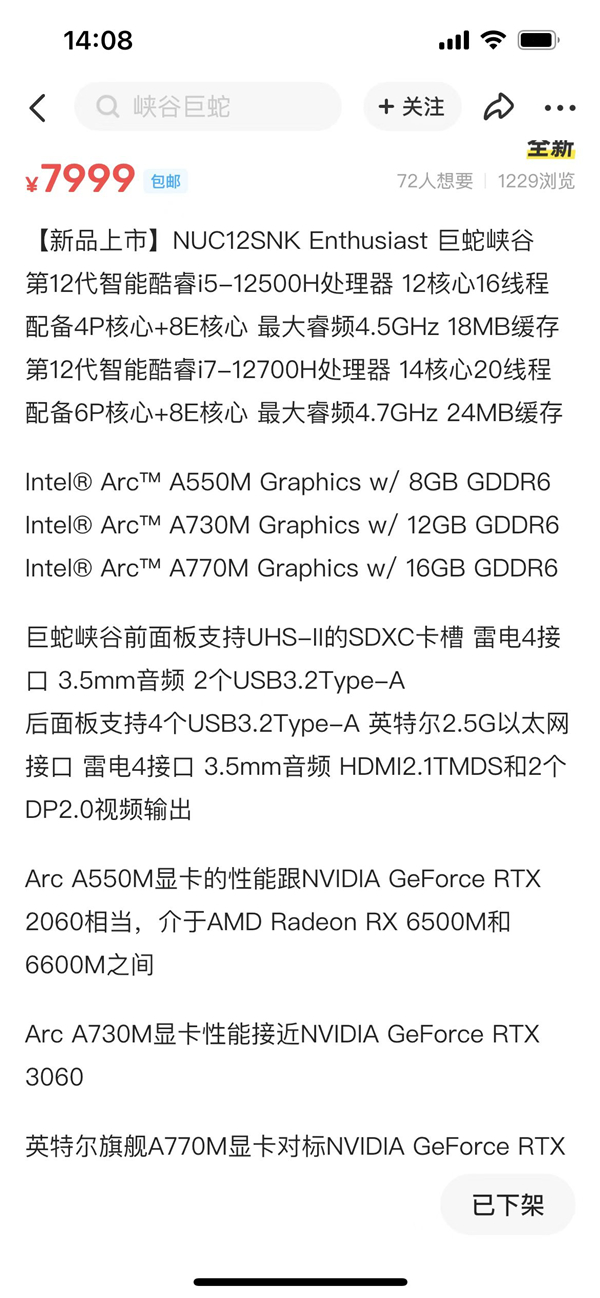 但是,截止目前,閑魚平臺上的英特爾巨蛇峽谷NUC均已下架。