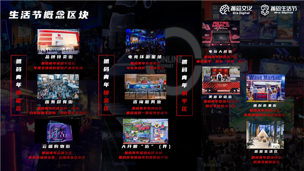 在亮點打造上,抓碼生活節,通過“本土化IP+電競賽事+超級電商品牌聯名入駐+沉浸探展線下強帶貨場景”形式,開創“智電惠民,逛展探寶”沉浸式體驗;圍繞“場景引領消費”為核心,打造“快樂購物生活”高質氛圍,線上線下,提振消費;政策扶持之下,開啟百萬參展扶持計劃;實現電商娛樂一體化,圍繞吃/購/行/娛,讓科技加速生活數字化,感知數字生活新體驗;生活節現場巧妙將打卡文化與電競賽事、通過娃娃機、盲盒機、投籃機等游戲設備與童年回憶串聯,C端客群增加氛圍感;打造福袋文化沉浸探展、NPC猜謎等形式,傳遞沉浸式體驗現場活動的參與感與驚喜感。