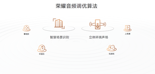 基于榮耀的AI智慧能力,榮耀平板8默認(rèn)開啟智能場景音效識(shí)別功能,實(shí)時(shí)檢測用戶的使用場景和APP,智能匹配人聲、音樂、電影、游戲四種預(yù)設(shè)音效配置,配合超大的12英寸屏幕為用戶打造專屬移動(dòng)影院。同時(shí),榮耀平板8特有的人聲增強(qiáng)算法特別適合孩子的網(wǎng)課場景,讓老師的聲音如同面對(duì)面講授,同時(shí)此功能也適用于視頻會(huì)議場景。