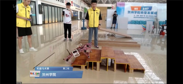 7月22日——機(jī)器馬術(shù)賽:華中科技大學(xué)、北京航空航天大學(xué)、四川大學(xué)等48支高校隊(duì)伍參賽。今年的馬術(shù)比賽采用線上方式進(jìn)行,只設(shè)置障礙賽,取消競速賽。每支隊(duì)伍的機(jī)器馬在3分鐘內(nèi)跨越蹺蹺板、階梯、雙木橋、高欄4個(gè)關(guān)卡,展示機(jī)器馬向前行進(jìn)、爬坡、彈跳等動(dòng)作,檢驗(yàn)賽隊(duì)對(duì)于機(jī)器馬重心及摩擦力、關(guān)節(jié)自由度等設(shè)計(jì)水平。