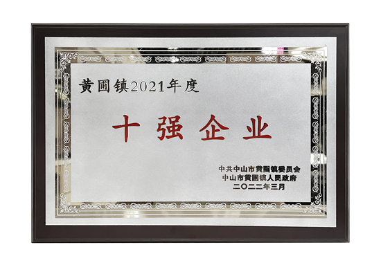 樂(lè)邦生活電器有限公司榮獲黃圃鎮(zhèn)2021年度十強(qiáng)企業(yè)獎(jiǎng)