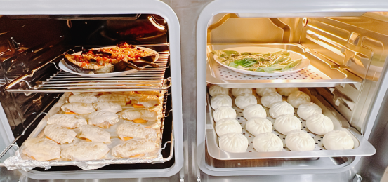 當家里來客人了,短時間內完成一桌子菜成為一件簡單的事情。德意蒸烤均衡集成灶擁有行業最出色的獨立蒸烤空間,48L純蒸空間+48L單烤空間,可容納16個標準餐盤,蒸烤一IN俱全,讓你大開眼界。