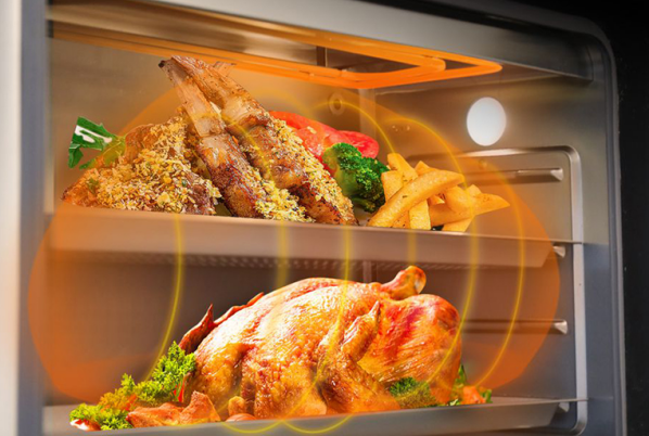 金帝X901ZK蒸烤一體集成灶蒸出營(yíng)養(yǎng),烤出美味,創(chuàng)造出豐富的美食。全艙立體熱循環(huán)烘烤,自上而下形成3D颶風(fēng)熱流,溫度均勻,烤制時(shí)無(wú)需翻面,一次成功,而且熱風(fēng)能帶走多余的油脂,烤出更加健康的美味。比如烤雞腿,不僅外酥里嫩、色澤誘人,而且營(yíng)養(yǎng)健康,可謂一舉兩得。