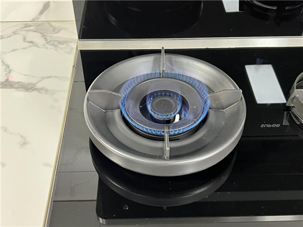 首先來(lái)測(cè)試一下。開(kāi)啟灶具,小火火焰穩(wěn)定不飄忽,大火內(nèi)外環(huán)火焰均呈現(xiàn)出純凈的湛藍(lán)色。