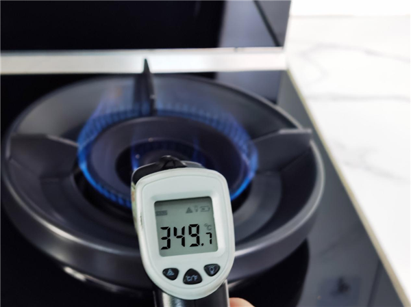 經(jīng)現(xiàn)場(chǎng)紅外線進(jìn)行火焰溫度的測(cè)量,開(kāi)啟灶具后,僅需幾秒,大火情況下溫度可以達(dá)到300℃以上。