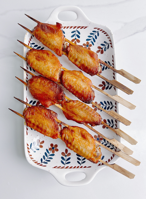 烤好的雞翅香氣四溢,色澤均勻,雞肉外焦里嫩,撕咬時(shí)能夠看到些許汁水溢出。