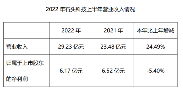 石頭科技2022年上半年實現營業收入29.23億元,同比增加24.49%;實現歸母凈利潤6.17億元,同比下滑5.40%;實現扣非后歸母凈利潤5.88億元,同比增加2.38%。2022年Q2公司實現營業收入15.64億元,同比增加26.46%;實現歸母凈利潤2.74億元,同比下滑18.66%;實現扣非后歸母凈利潤2.87億元,同比下滑2.12%。