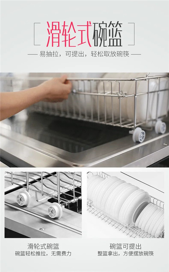 佳歌一門式消毒柜款集成灶采用的是帶防滑墊的輪滑式拉籃,可直接取出,相比普通鈑金碗籃,可容納的碗盤更多,同時降低空間阻隔對臭氧消毒產生的影響,真正發揮二星級消毒效果。
