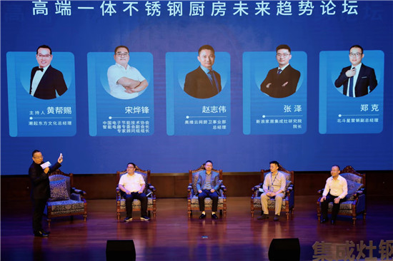 隨后,由潮起東方文化總經理黃幫賜主持的《一體不銹鋼廚房未來趨勢》論壇上,中國電子節能技術協會副會長宋燁鋒、北京奧維云網廚衛事業部總經理趙志偉、北斗星副總經理鄭克、新浪家居集成灶研究院院長張澤等各位資深行業人士,針對消費人群、需求升級、行業發展等相關現狀與未來趨勢展開深入對話。