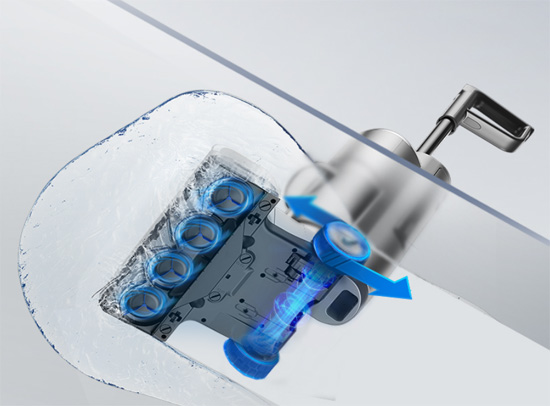 其實,想要做到臟污的全面帶走的整套流程是有很大難度的,吸力要大還要足夠有效、設計要合理還得配合得當,如此才能保證高效的清潔效果,擁有大吸力、水氣混合以及多種尖端技術民用化實操血脈的米博顯得游刃有余。