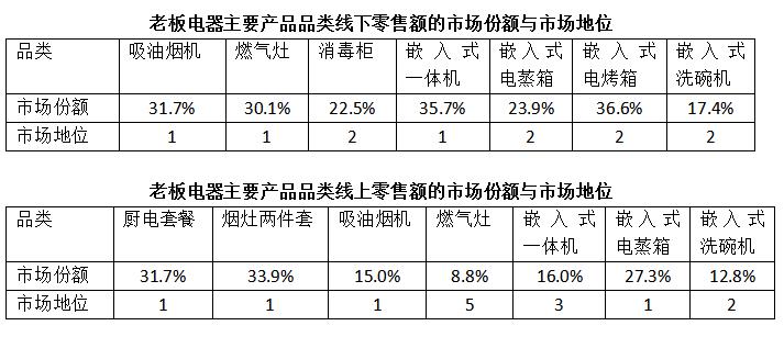 就具體的品類而言,根據奧維云網統計數據顯示,無論線上市場還是線下市場,老板電器在傳統廚電品類和新品類中取得了多個第一。