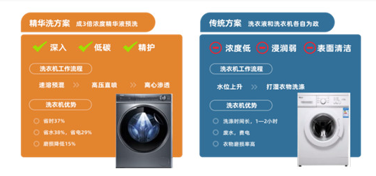 時下主流的滾筒洗衣機產品,存在著洗滌時間長,磨損率高,同時因為洗滌劑溶解慢、容易導致污漬清理不徹底。精華洗技術顛覆了傳統的洗滌方式,通過創新速溶預混,生成3倍濃度的精華液,高壓直噴迅速滲透衣物纖維,有效剝離污漬。傳統滾筒洗衣機需要1—2個小時才能達到的洗凈效果,精華洗洗衣機39分鐘就可實現,同時能將衣服磨損降低15%,用水量和耗電量分別節省38%和29%。