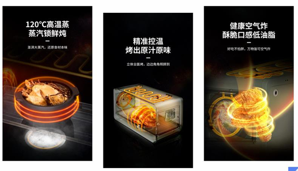 LoT遠程智控,讓烹飪真正打破時空限制;天貓精靈AI語音控制,與烹飪對答自如;超震撼尺寸智能彩屏,指指點點便可輕松烹飪。輕松松松做全域烹飪指揮家!