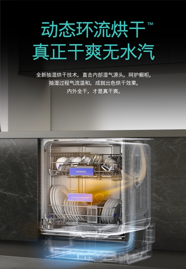 消費者對全能型洗碗機的期待,不僅要求其具備超強潔凈能力,而且應具備一站式解決洗碗衍生難題的能力,即洗凈后的消毒、烘干、儲存。對比以往的專研專利熱交換搭配強效冷凝烘干技術,新品升級艙內動態環流烘干功能,以全新抽濕烘干技術直擊內部濕氣源頭,成就更高效的烘干、除菌效果。據實驗數據顯示,這款洗碗機在實現99.999%除去幽門螺旋桿菌、金色葡萄球菌、大腸埃希氏菌等細菌的成效之外,還達到脊髓灰質炎病毒消毒率99.999%,同時能夠抑菌儲存96小時。集洗、消、烘、存于一體的西門子全能艙系列洗碗機新品,從清洗烘干到儲存收納,一步到位。