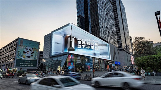 成都太古里的這塊裸眼3D大屏,有888平方米,雖是曲面,畫面內容卻能呈現出宛如立體、溢出屏幕的真實感,在全國也有著不小的知名度,尤其受到年輕人的關注和喜愛,已成為成都又一地標性網紅打卡圣地。