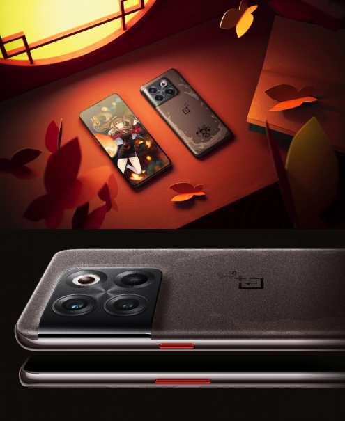 一加Ace Pro原神限定版設計上一方面延續了一加極具質感的設計風格,另一方面對胡桃元素進行了提煉,將梅花、蝴蝶以及火焰等標志性元素融入外觀設計。一加Ace Pro原神限定版機身配色為深棕色,其靈感來源于胡桃標志性的「乾坤泰卦帽」。手機背面采用一體連續曲面玻璃與第三代絲綢玻璃工藝的雙工藝,兼具質感與手感。玻璃后蓋上還以象征胡桃元素屬性的「烈焰紋理」為點綴,視角轉動時可呈現光影變化效果。機身背面下方還刻有胡桃立繪頭像浮印,配合磨砂AG玻璃營造出光啞一體的視覺效果。一加還將背面的品牌Logo重新設計為「引蝶Logo」,這也是一加首次在機身上對Logo進行特殊設計。不僅如此,機身各處細節都暗藏胡桃元素,極具匠心:側邊鍵配色采用胡桃頭飾的梅花紅;胡桃與眾不同的「梅花瞳」造型則融入了閃光燈中心。