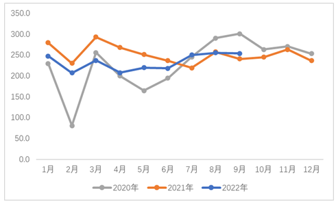 當月:2022年9月,我國家用洗衣機行業總產量658.2萬臺,同比下降2%;總銷量654.6萬臺,同比下降2.3%。其中內銷出貨量400.6萬臺,同比下降6.7%。出口出貨量253.9萬臺,同比增長5.5%。
