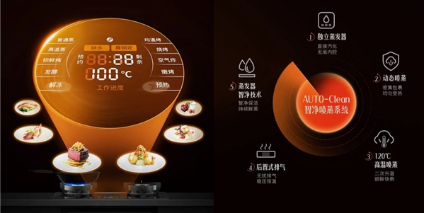 此外,下方的特制麥飯石內膽具備普通蒸、高溫蒸、鎖鮮燉、均溫烤、嫩烤、燒烤、空氣炸、發酵模式等多重烹飪模式,不僅讓烹飪的過程變得簡單且更有樂趣。